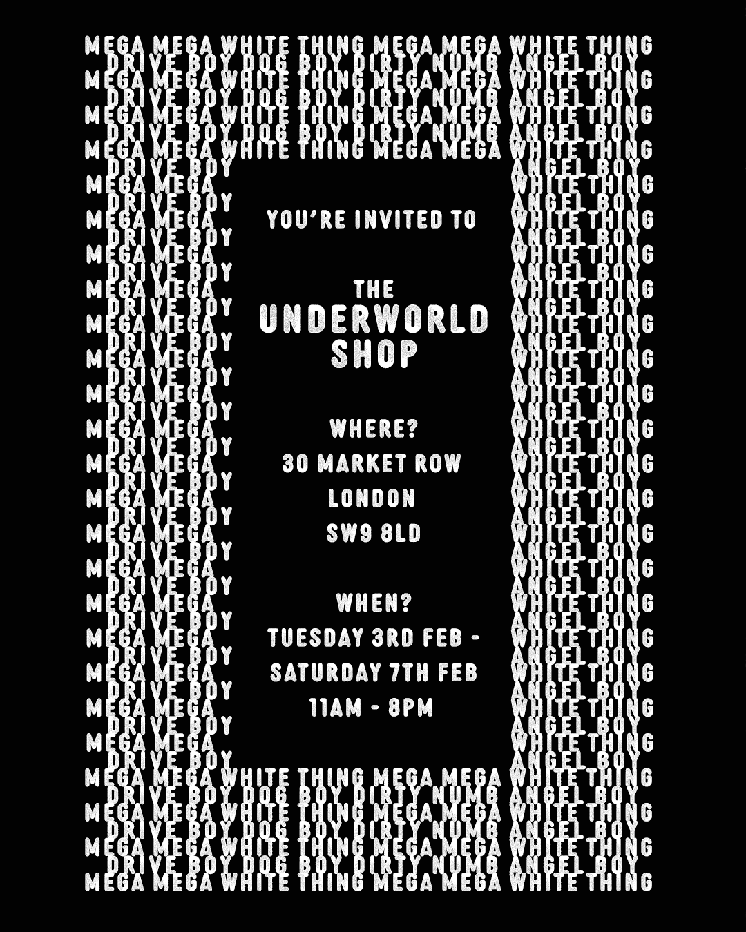 Join us at our first ever Underworld Shop in Brixton Market.